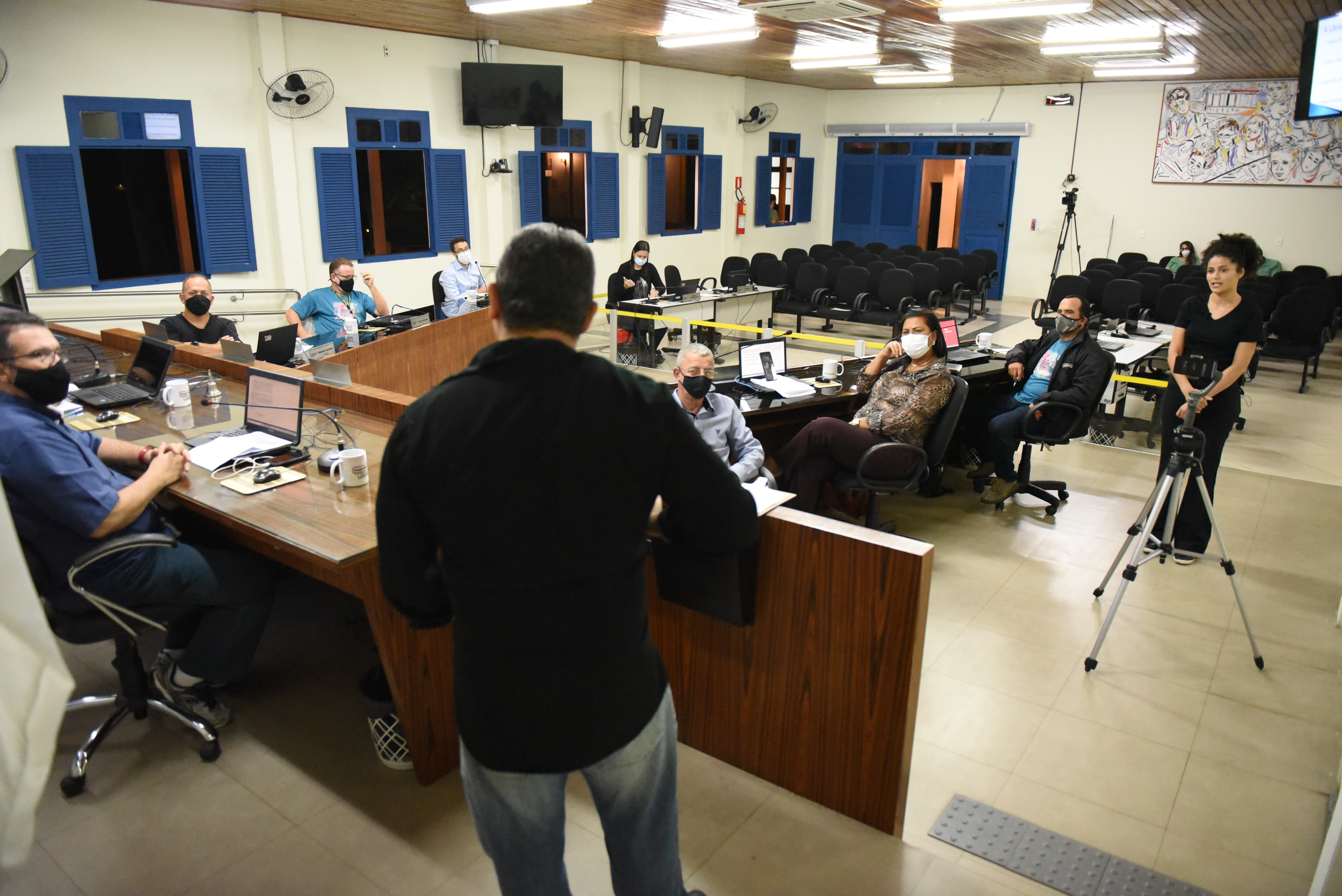 Ao fundo, a servidora Geone Andrade durante interpretação das manifestações