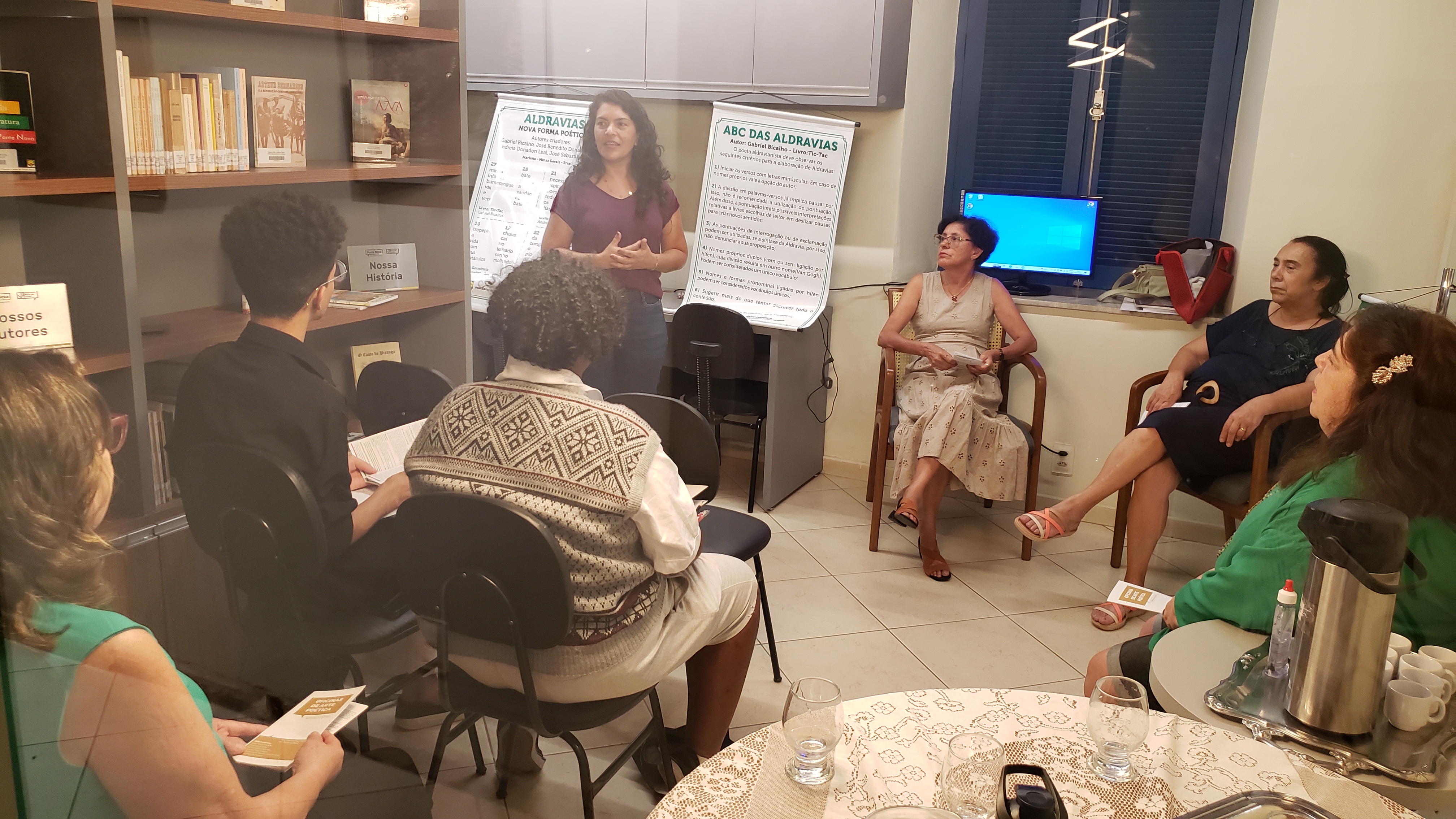 Devido ao Dia Municipal da Poesia, comemorado em 16 de novembro, a Câmara e a Alepon realizaram as Oficinas de Arte Poética, na Biblioteca Maria de Abreu. Os participantes receberam orientações sobre poemas minimalistas, na teoria e na prática, com foco nas modalidades poéticas Aldravias e Quintas.