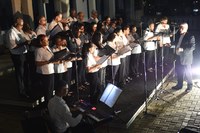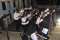 Pelo segundo ano consecutivo, o Coral Vozes do Piranga, sob a regência do maestro Délcio Stavanato, emocionou o público com uma belíssima apresentação durante o II Recital de Fim de Ano da Câmara de Ponte Nova. O evento ocorreu durante a noite da última quinta-feira (22), no pátio da Casa Legislativa, ao lado do Plenário João Mayrink, com os coralistas voltados para o público, o Rio Piranga e o centro histórico.