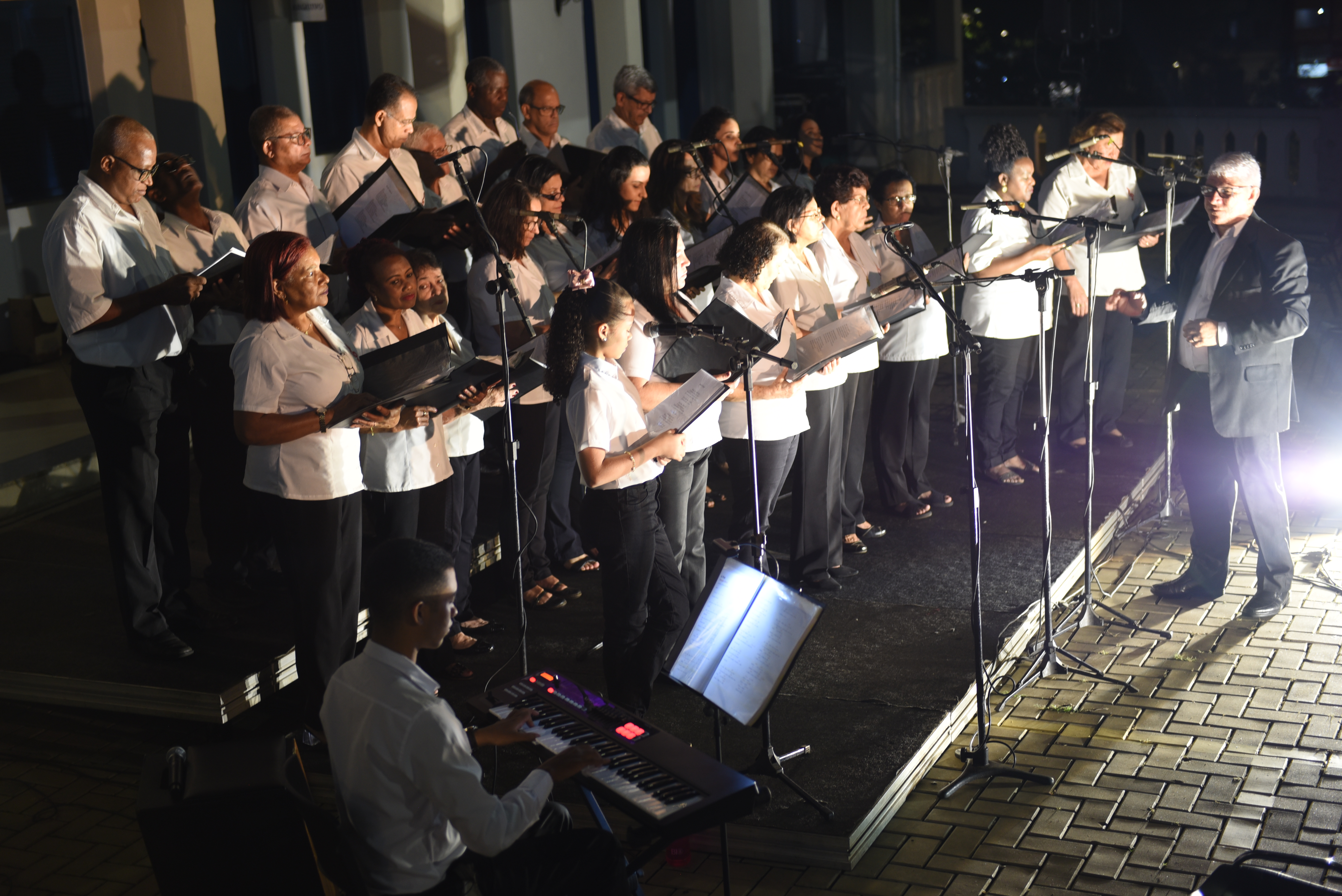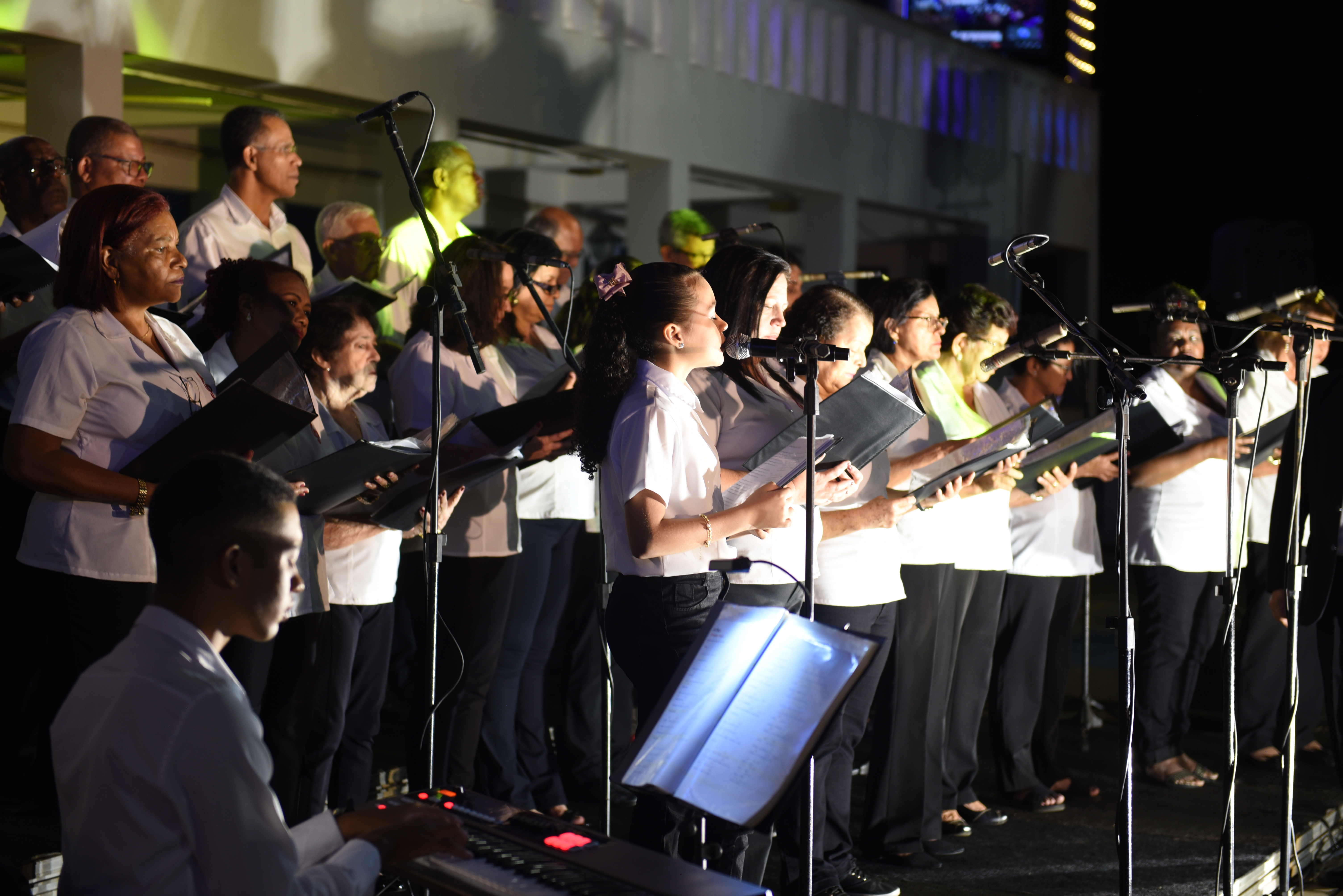 Foram apresentados cânticos temáticos de fim de ano, de valorização da fé e exaltação da esperança e da paz.