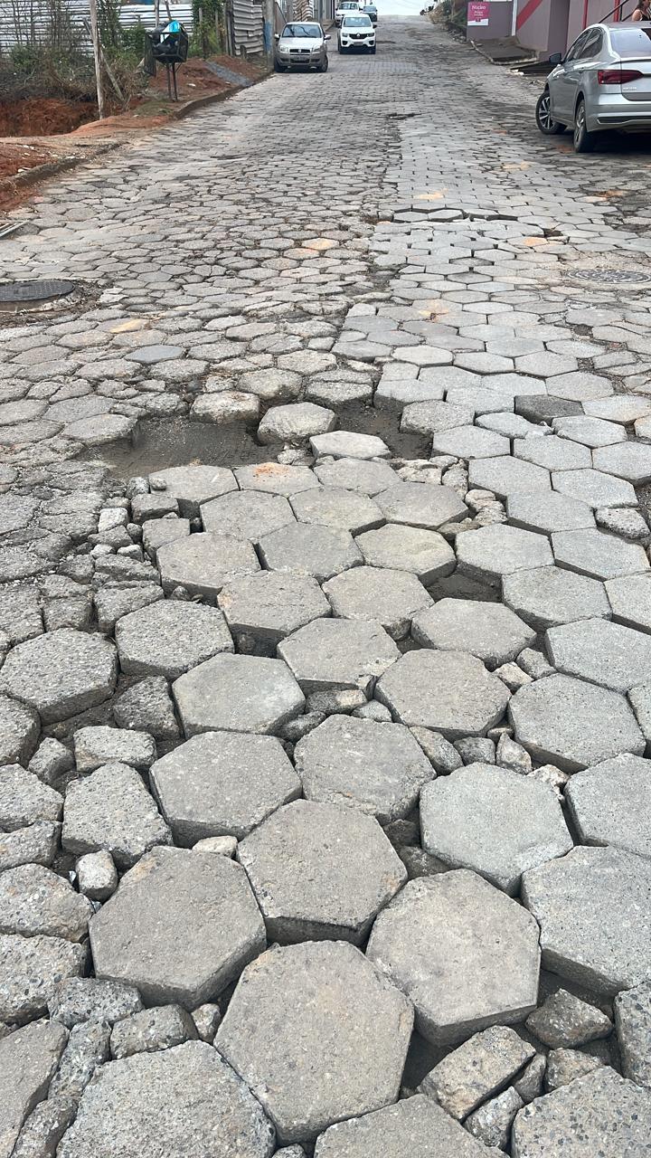 “É a rua principal que dá acesso ao Morada Paraíso. Então, transitam muitos carros aí diariamente. [...] Algo precisa ser feito. Se não dá pra bloquetar, que arranque esses asfaltos todos aí, esses bloquetes todos aí e faça o asfalto da via”, propôs.