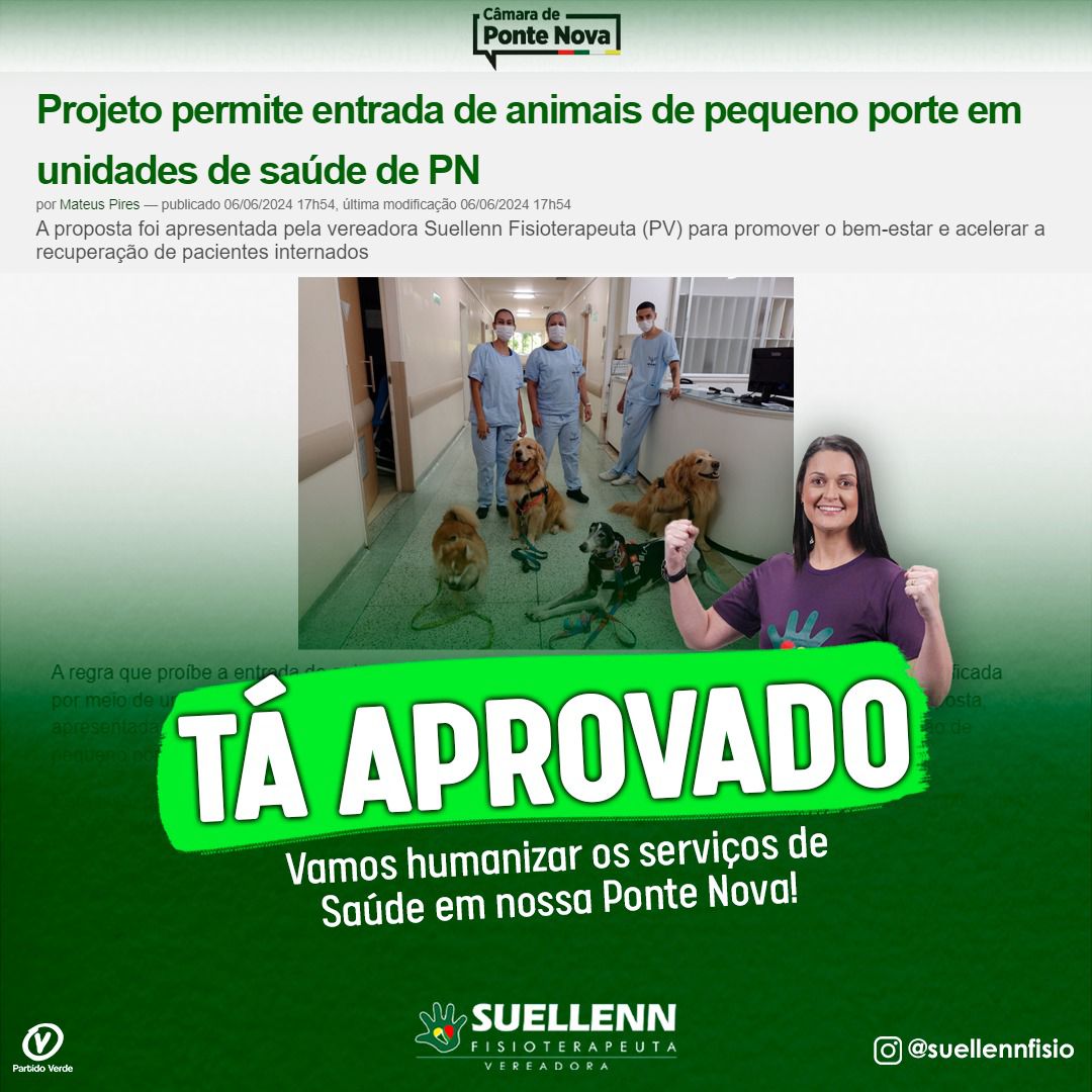 “É um Projeto que não é meramente burocrático e sim humanitário. Tem vários estudos que afirmam que 73% da presença desses animais ao lado de pacientes internados reduz de fato o estresse, o tempo de internação, a ansiedade e a depressão. [...] Continuo aqui lutando por projetos sensíveis, tornando a nossa Cidade mais humanizada e mais acolhedora”.